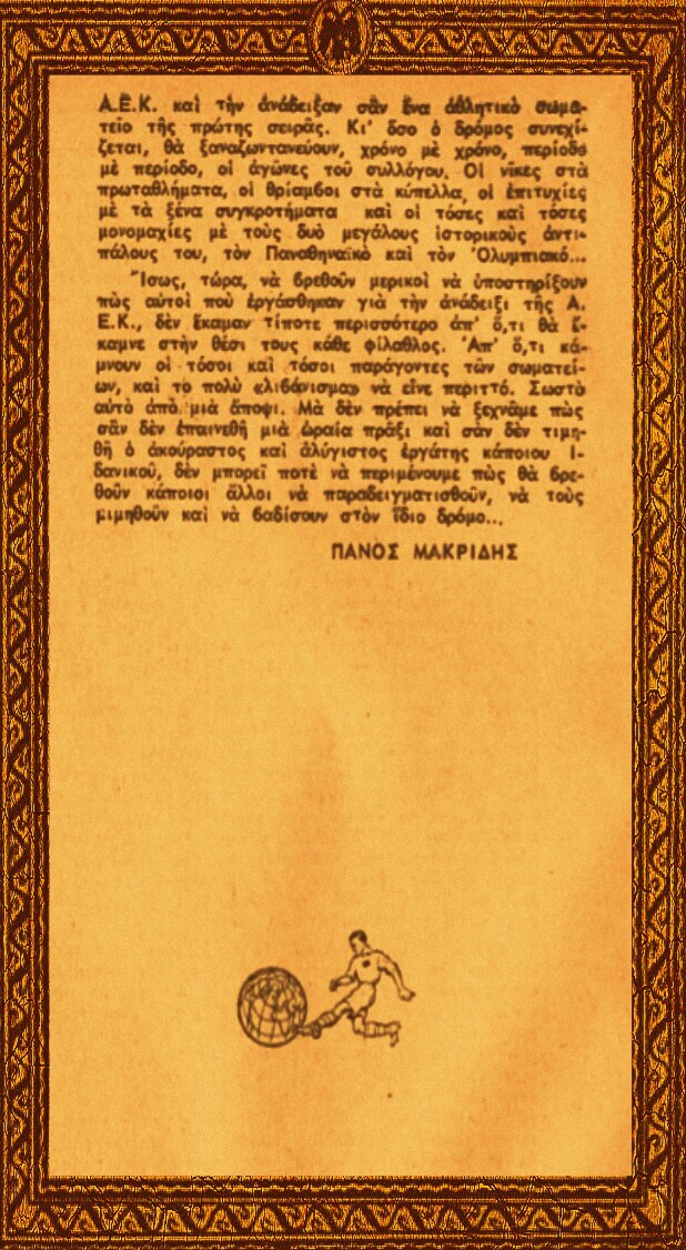 Η ΑΕΚ των Επωνύμων …