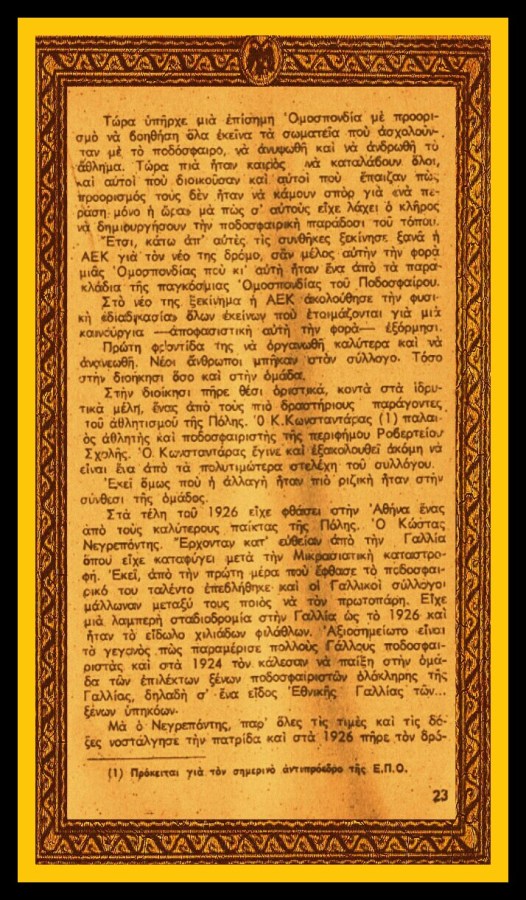 ΟΤΑΝ Η ΑΕΚ ΣΤΑΜΑΤΗΣΕ ΤΙΣ ΒΟΜΒΕΣ…